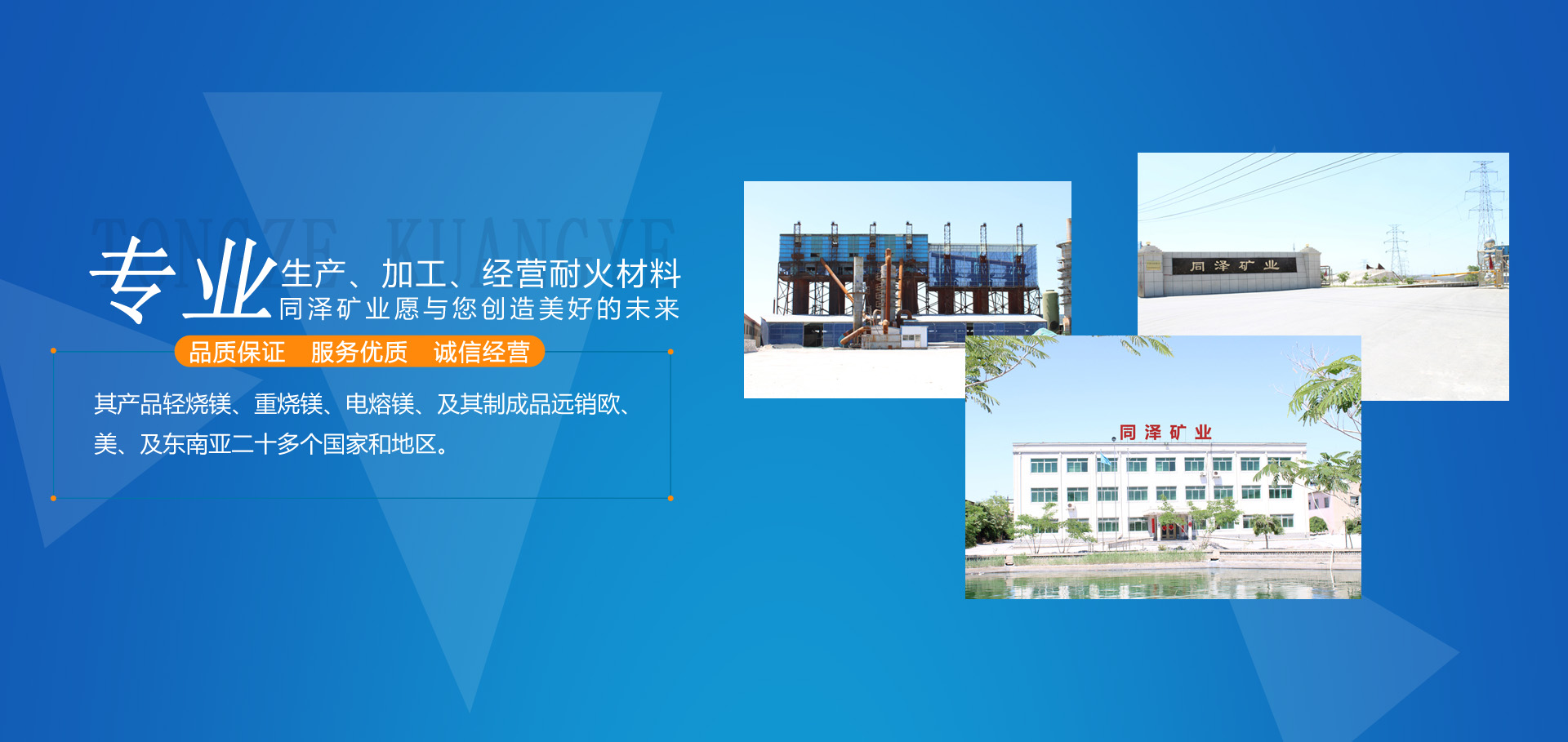 大石橋市同澤礦業(yè)有限公司,是以生產(chǎn)、加工、經(jīng)營各種耐火材料為主的綜合性經(jīng)濟(jì)實體。其產(chǎn)品輕燒鎂、重?zé)V、電熔鎂、及其制成品遠(yuǎn)銷歐、美、及東南亞二十多個國家和地區(qū)。